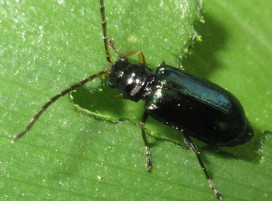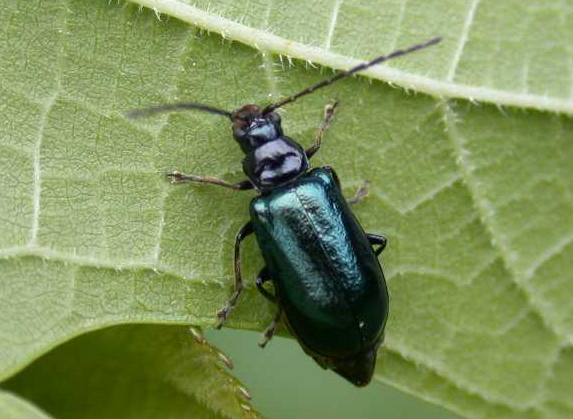 ◦ 성충은 몸길이 6~7mm로 몸빛깔은 검은 남색임