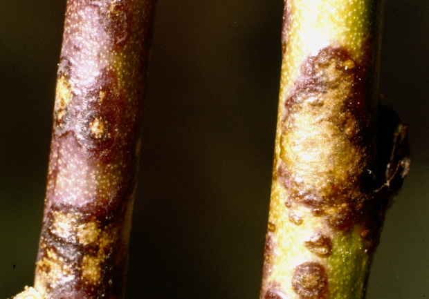 ◦ 가지에는 6~7월경 적갈색 작은 반점이 생기고 잎에는 흑갈색 작은 점이 생김