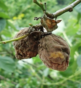 ◦ 과실에 초기에 흑색 소형 반점이 나타나고 과실이 비대해지면 대형 반점이 되며 함몰함
