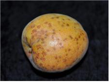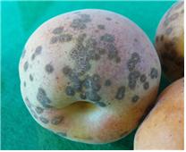 ◦ 발병 초기에는 파리똥이 묻어 있는 듯이 보이다가 점차 진전되면 조직이 코르크화되어 딱딱해지며, 표피가 갈라지기도 함