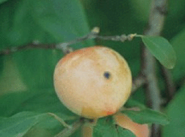 ◦ 과일에는 작은 수침상 병반이 생기고 점차 자흑색 원형 병반으로 변하며, 후기에는 병반부위에서부터 열과가 되기도 함