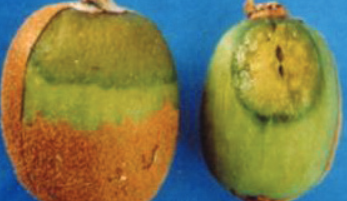 ◦ 연부병의 병원균은 0~2℃ 저온 저장 중에는 병원균의 증식이 억제되지만 잿빛곰팡이병균은 저온에서도 증식이 정상적으로 이루어져 0~1℃에서 수확 시 발생한 열매꼭지 상처를 통해 하루에 0.2mm 가량 침투함