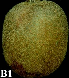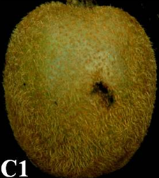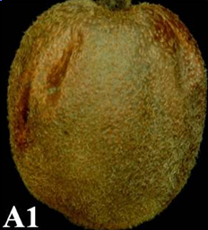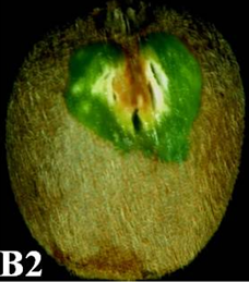 ◦ 초기에는 외부적으로 뚜렷한 증상이 없기 때문에 확인이 쉽지 않으며, 병이 진행되면서 과실의 일부분이 다소 움푹 들어가고 껍질 표면이 갈변하는 현상이 나타나고 점차 확대됨