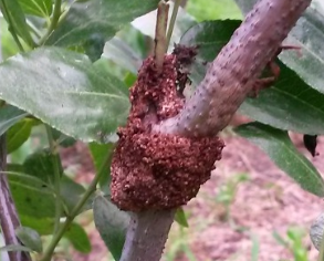 ◦ 유충이 주로 5~6월에 주로 발생하기 시작하고 줄기나 가지 속으로 들어가면 방제가 곤란하므로 과원 내 1차 기생식물인 초본류 등을 없애 포장 주변 및 나무 밑동을 청결히 함