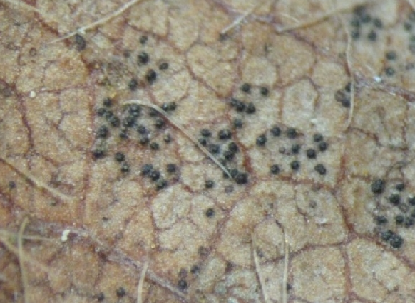 ◦ 병원균은 낙엽된 병반에서 작고 검은 점이 많이 발생하여 그 상태로 월동함