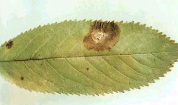 ◦ 등록된 약제가 없으므로 복숭아 잿빛무늬병에 준하여 방제하며, 수확 후에도 잎으로의 감염이 많으므로 정기적으로 약제를 살포하여 다음해 발생량을 줄여야 함