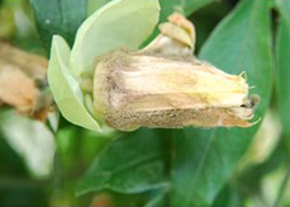 ◦ 꽃이 수침상으로 물러지면서 부패되어지고 회갈색으로 변하면서 시들어 말라 죽음