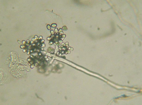 ◦ 불완전균에 속하며, 분생포자는 무색, 타원형 혹은 계란모양, 약간 돌출한 배꼽(hilum)을 가지고 있으며, 크기 6~18×4~11㎛, 균핵은 흑색, 부정형, 길이 3~6mm임