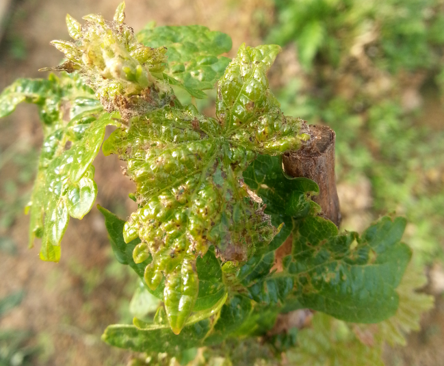 ◦ 병원균은 결과모지나 덩굴손의 병든 조직에서 균사 상태로 월동