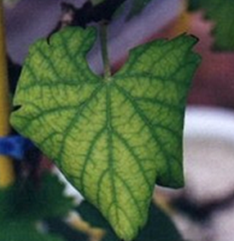 ◦ 녹색의 잎맥은 넓어지고 잎맥 사이는 노란색이나 적색으로 변함