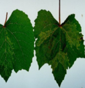 ◦ 특히, 머루에서는 잎맥이 갈변하면서 괴사되는 증상을 나타내기도 함