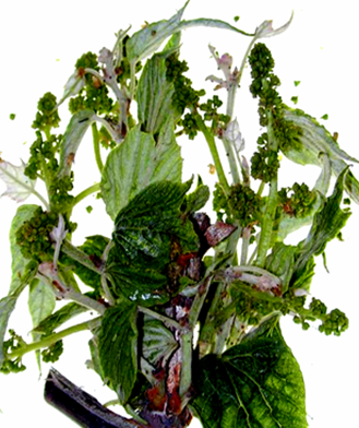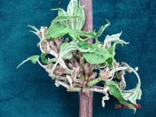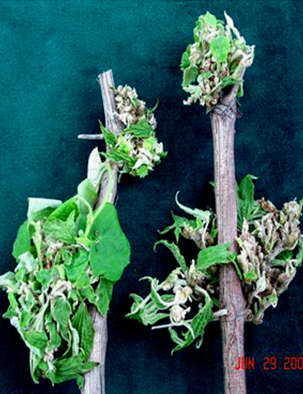◦ 병원균 감염으로 총생화와 잎이 가늘어지는 세엽, 꽃눈이 비정상적으로 많이 발생한 다화아 증상 발생