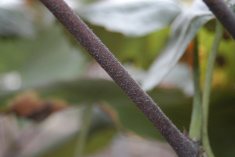 ◦ 결과지와 과실에 성숙기 이후 주로 나타나는 증상으로 흰얼룩이 결과지나 과실의 표면을 덮고 있어서 흰가루병과 유사한 증상을 나타냄