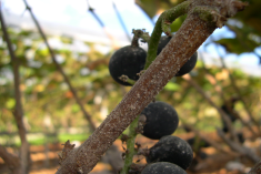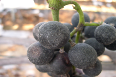 ◦ 포도송이에서 발생을 방지하기 위하여 알솎기(적립) 후 봉지씌우기 전 살균제를 송이와 가지에 충분히 살포하고 장마철 다습할 때 잎과 가지에도 철저히 방제