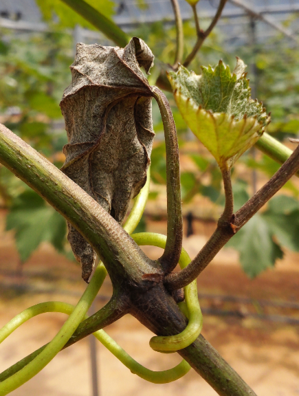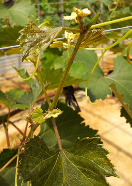 ◦ 보통 낙화 후부터 30~40일 경에 과방과 신초에 최고밀도에 달하고, 시설 내 포도에서 노지보다 피해가 심함