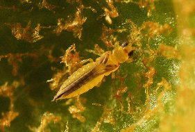 ◦ 성충은 몸길이 0.8~1mm로 아주 작은 곤충으로 날개는 가늘고 좁으며 둘레에 가는 털이 나 있음