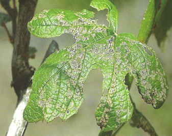 ◦ 최근에 발생하는 해충으로 어린 포도순이나 연한 줄기 부분을 가해하며, 피해 받은 잎이 성장하므로 흔적이 크게 나타남