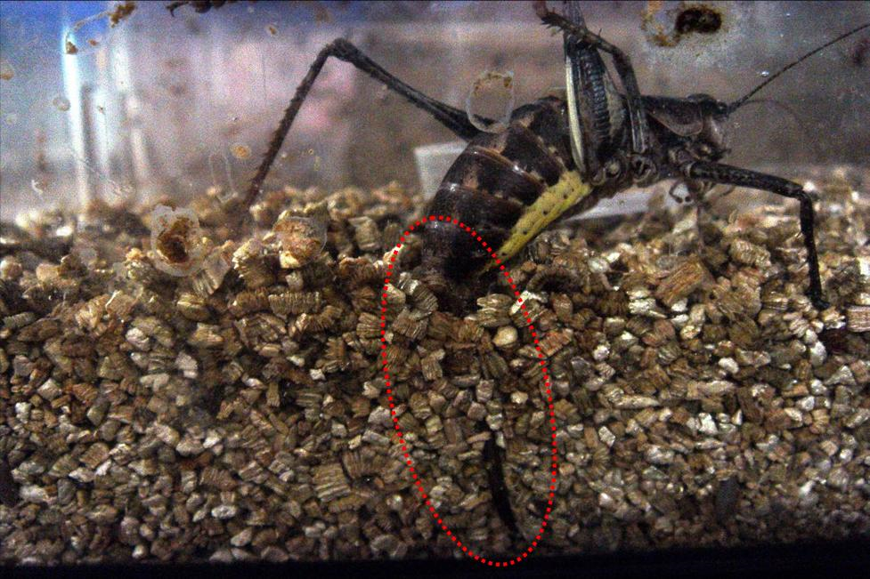 ◦ 암컷의 산란관은 길고 아래쪽으로 약간 휘어져 있음