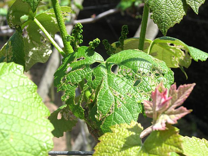 ◦ 산에서 증식한 후 5월 상순부터 한 두 마리씩 과수원으로 내려오기 시작하여 5월 하순부터 약 한 달간 밀도가 가장 높고 피해가 심하며, 7월 상순부터 다시 산으로 돌아가 암컷 한 마리가 90~100개 정도 산란함