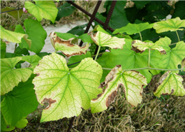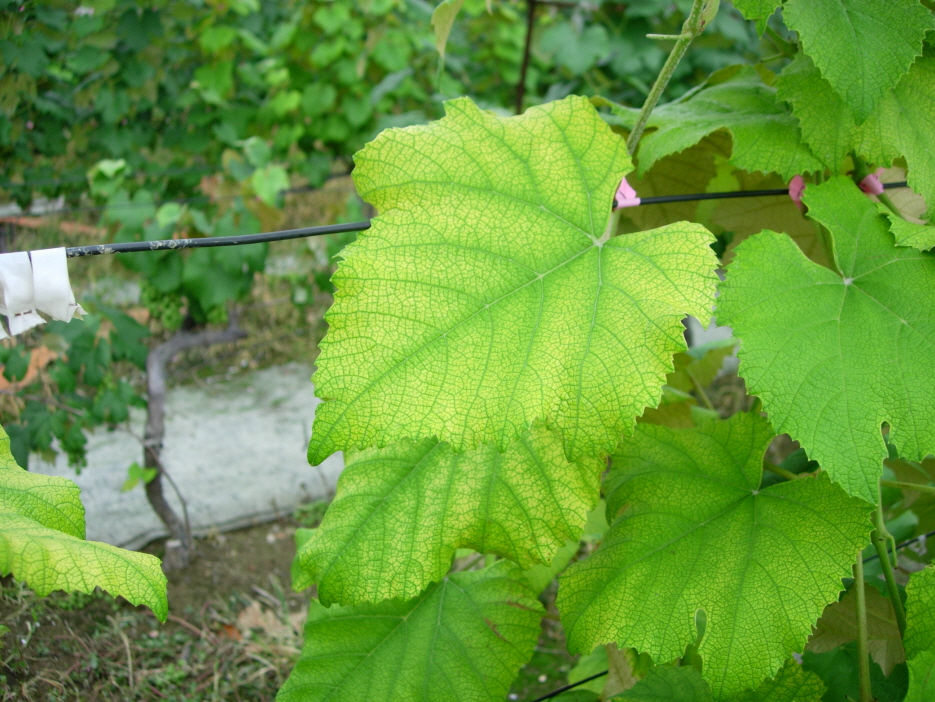 ◦ 식물체 내에 철이 부족하여 잎맥사이의 엽육조직부터 엽록소가 줄어들어 잎의 가장자리부터 안쪽으로 잎맥을 따라 노랗게 변해 들어가는 증상임