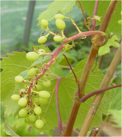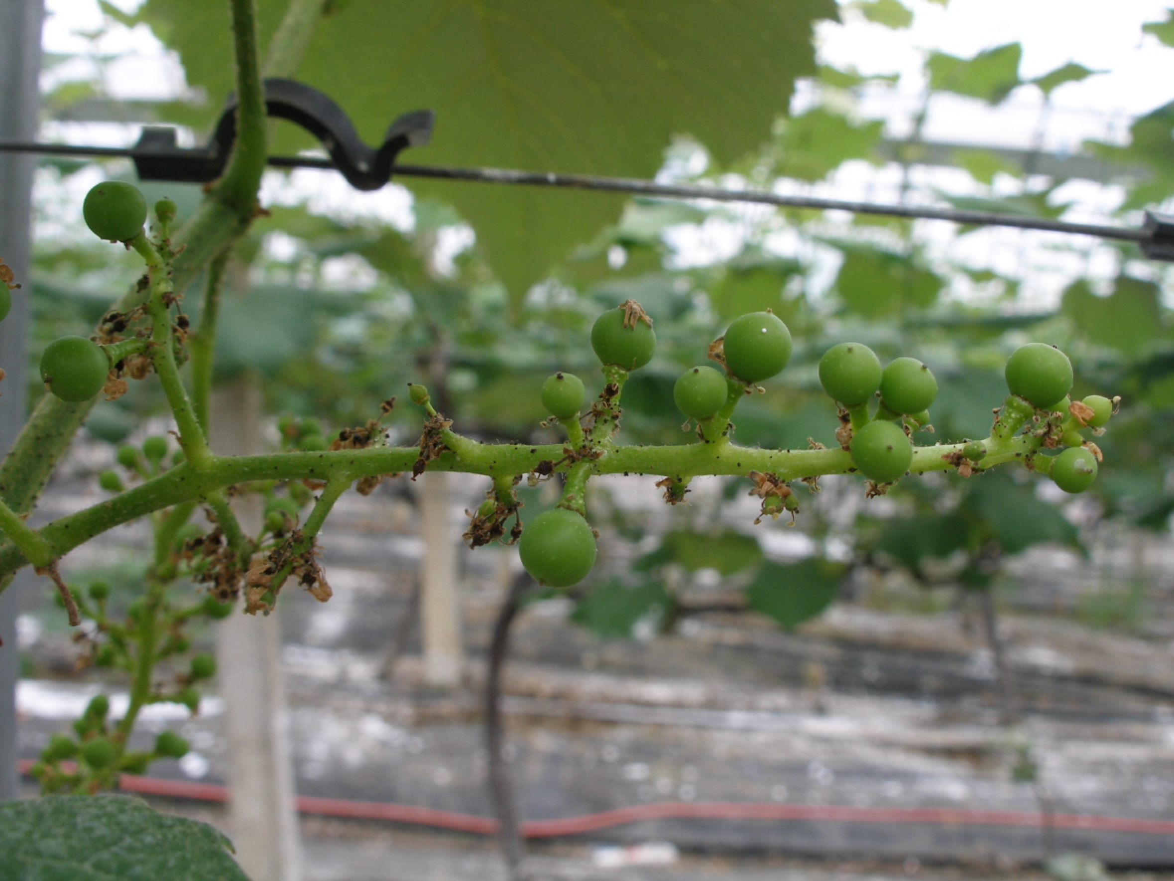 ◦ 꽃이 핀 후 포도알이 정상적으로 달리지 않고 드문드문 달리거나 무핵 포도알이 많이 달리는 것을 말함