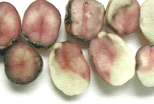 ◦ 병든 괴경의 내부는 조직이 스폰지 모양으로 변하고 칼로 절단하면 얼마 지나지 않아 내부 조직이 분홍색을 띠게 됨