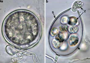 ◦ 병원균은 병든 괴경이나 식물체의 잔재 혹은 토양 내에서 존재하다가 유주자를 형성하여 식물체를 침해함