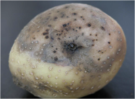 ◦ 감염된 괴경은 담갈색을 띠고 썩으며, 껍질눈은 암갈색으로 변함