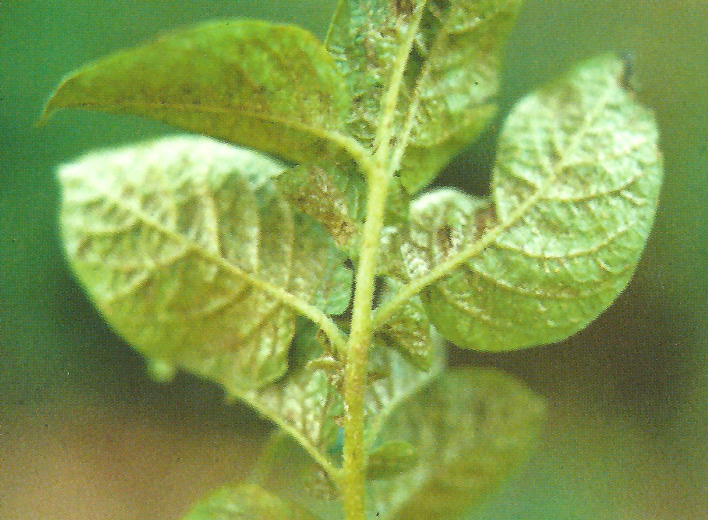 ◦ 순부위에 피해를 받으면 흡즙한 부위에서 갈색반점이 나타나기 시작하고 점차 자라면서 뒤틀려 결국 잎이 기형이 됨