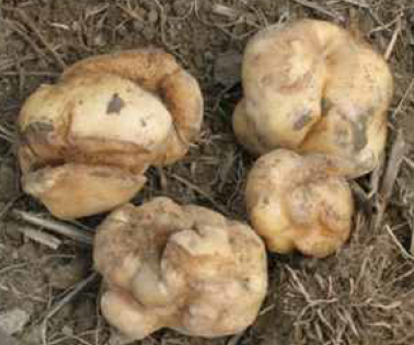 ◦ 일부 PVY 바이러스에 걸린 감자를 낮은 온도에서 재배할 때 감자 괴경의 쪼개짐 현상이 발생함(추백)