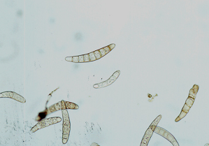 ◦ 분생포자는 거의 원통형으로 일반적으로 휘어져 있고 6~14개 격막, 크기 63~ 153×14~22㎛임