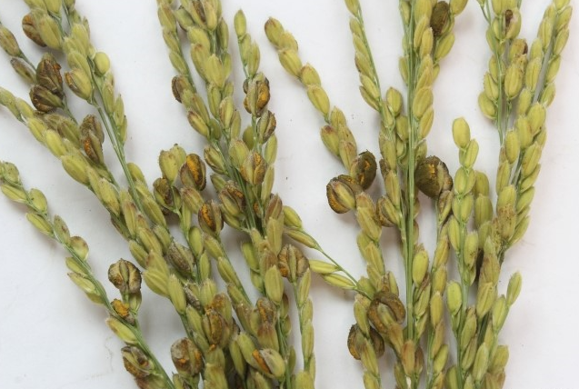 ◦ 병징은 벼알의 작은 껍질(내영)과 큰 껍질(외영) 표면에 황록색 및 암녹색의 돌출물이 완전히 종피를 둘러쌓아 육안으로 쉽게 구분