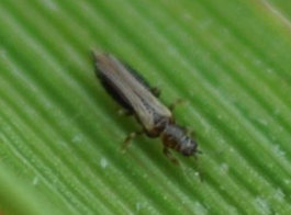 ◦ 성충은 약 1mm이고 매우 가늘며, 몸빛깔은 광택이 있는 진한 갈색임