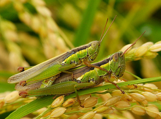 ◦ 벼를 비롯한 벼과 식물들을 갉아먹고 자라다가 본논으로 옮겨가 몇 차례 탈피한 후 8~9월에 성충이 됨