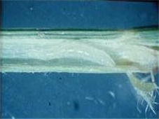 ◦ 2화기에는 부화한 유충이 줄기 속으로 파고 들어가 어린 이삭을 가해하므로 피해 받은 이삭이 출수하면 벼 알맹이가 퇴화된 것처럼 빈 깍지만 남음