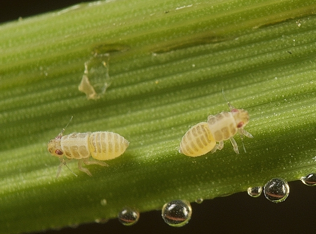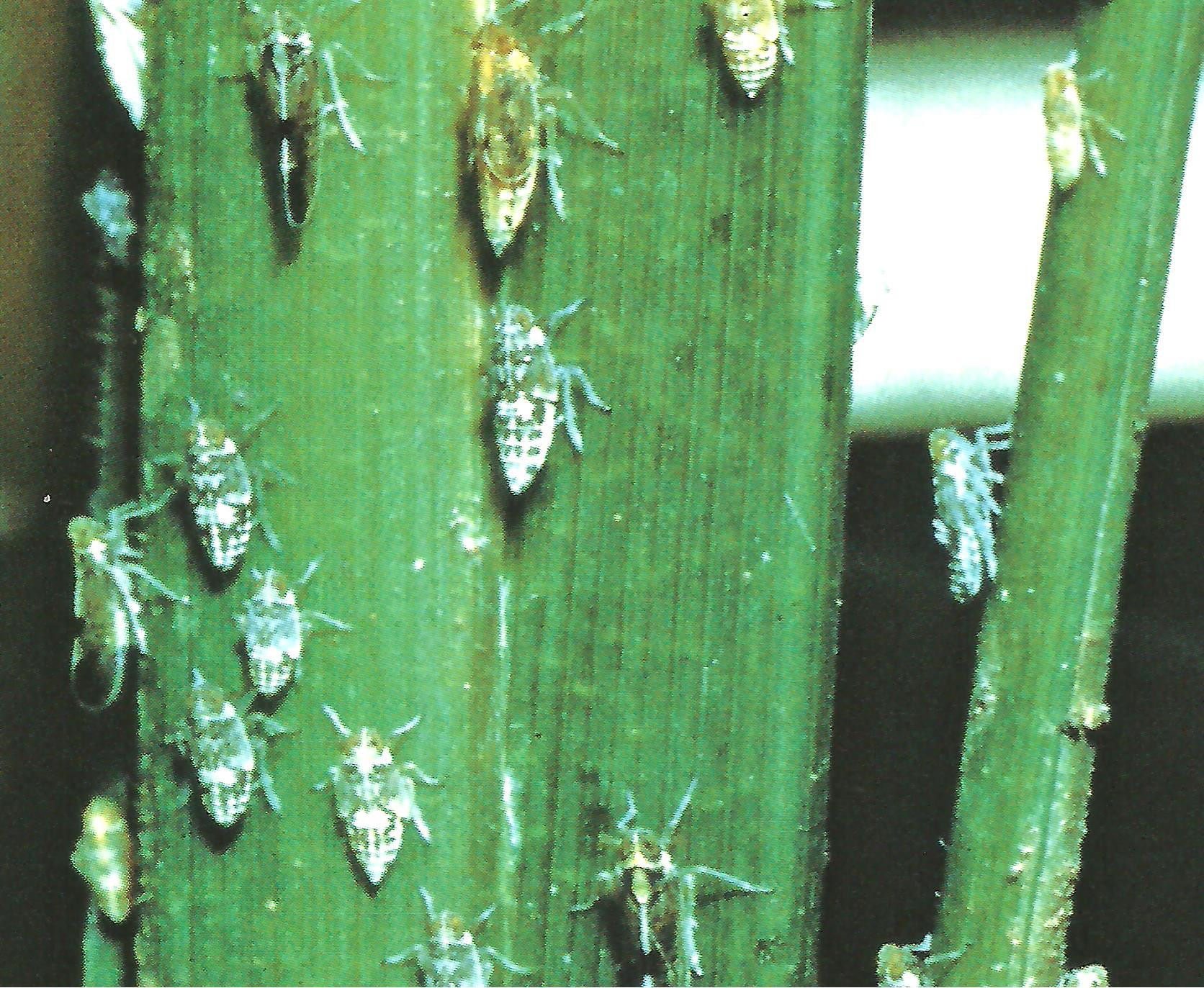 ◦ 성충과 약충이 직접 볏대를 흡즙하여 아랫잎이 누렇게 변색되고 초장 감소 등 초기생육 부진, 심하면 상위엽까지 갈색으로 변하고 출수 지연