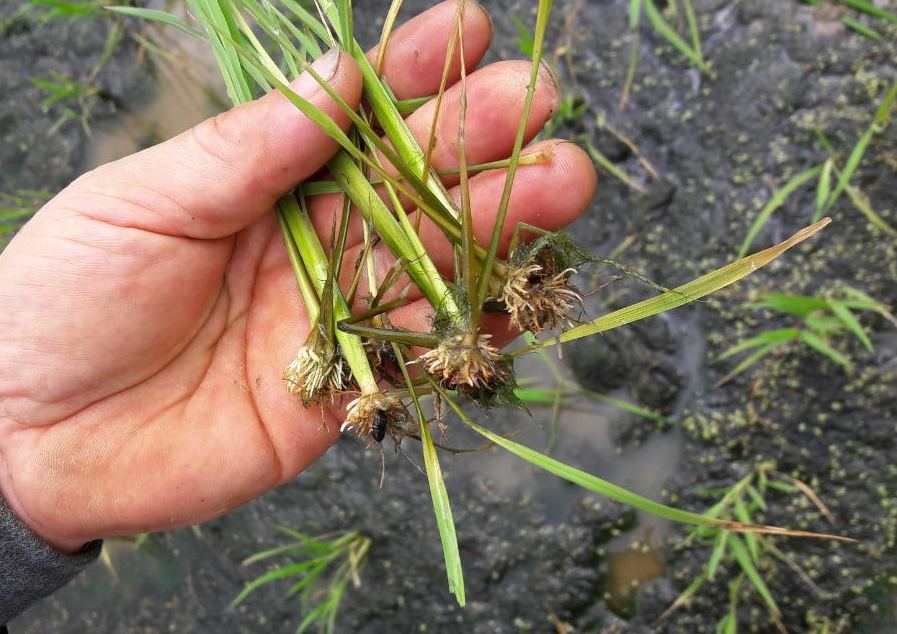 ◦ 유충이 볍씨의 눈 부위를 갉아먹어 발아를 못하게 하거나 유묘의 뿌리와 잎을 잘라 놓아 모의 생육을 불량하게 하고 입모를 방해함