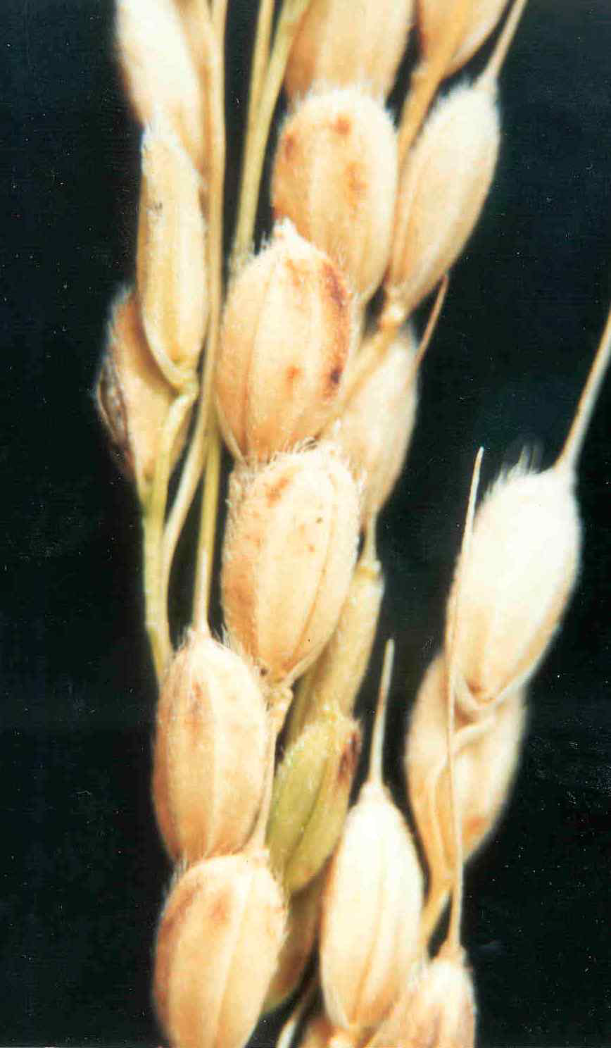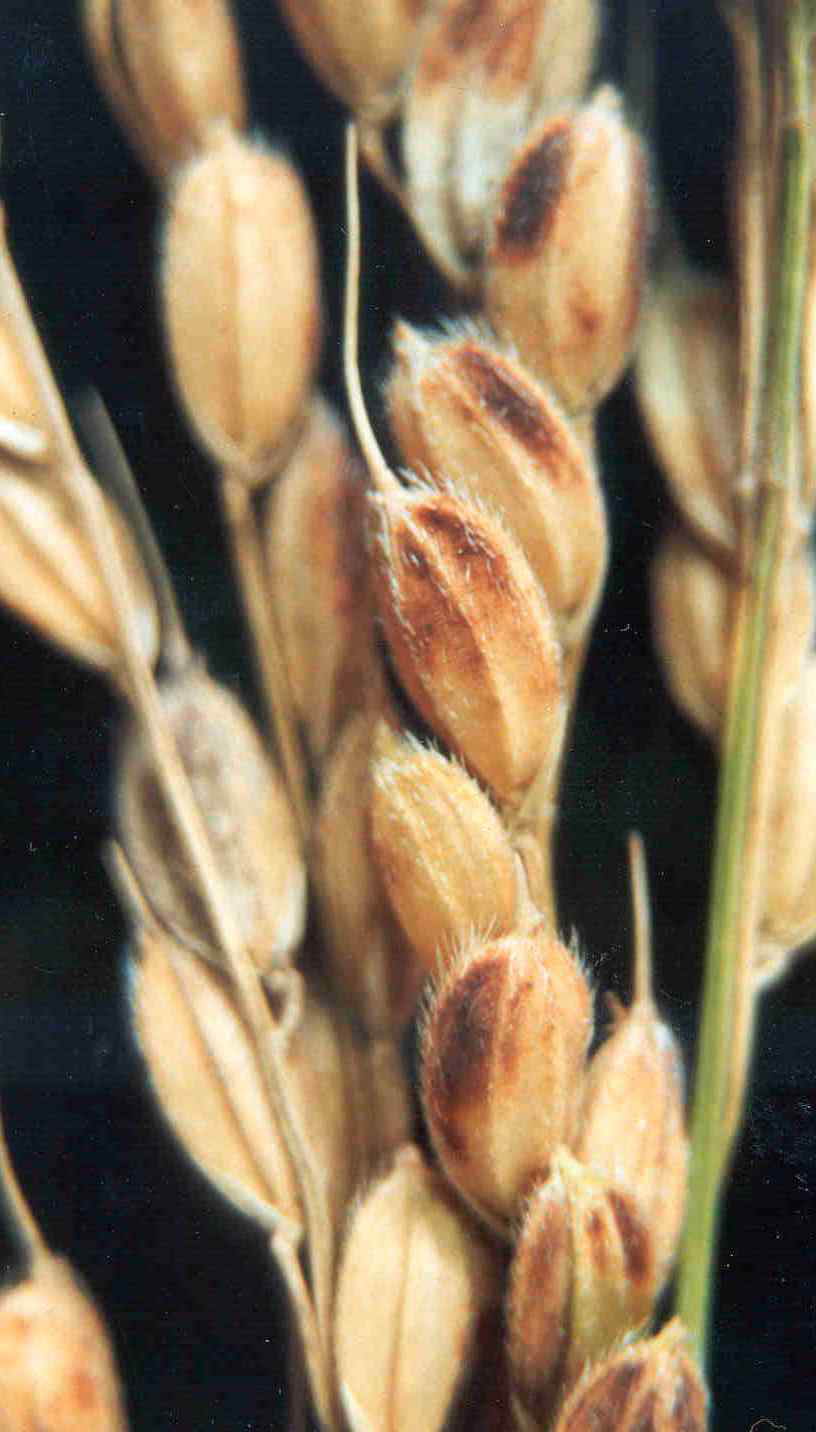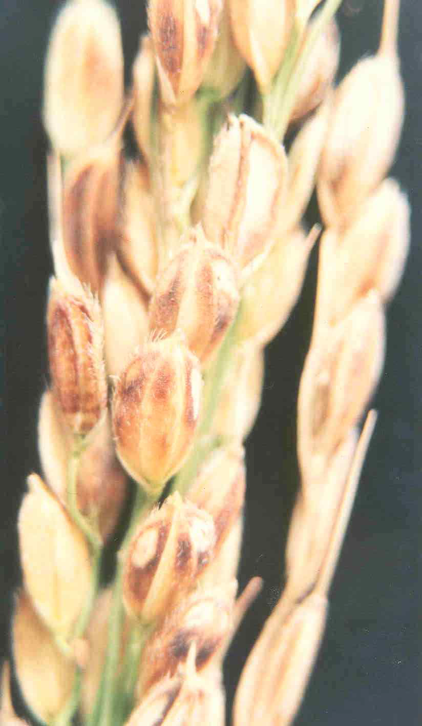 ◦ 변색립 : 벼알의 중간부분이 기계적인 마찰에 의해 상처를 입고 탈수되어 벼알의 발육이 정지되거나 동화 및 저장 기능 저하되며, 벼 껍질의 피해정도에 따라 등숙은 가능하나 천립중 감소하고 변색립율이 높을수록 수량이 떨어지고 등숙 비율과 완전미 비율이 낮아져 품질이 저하됨