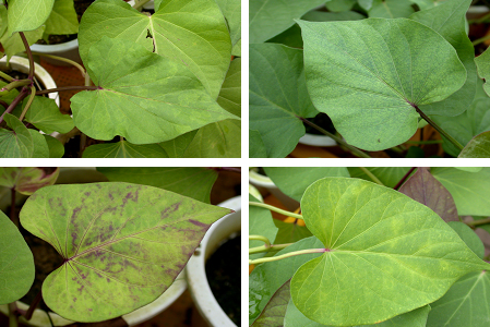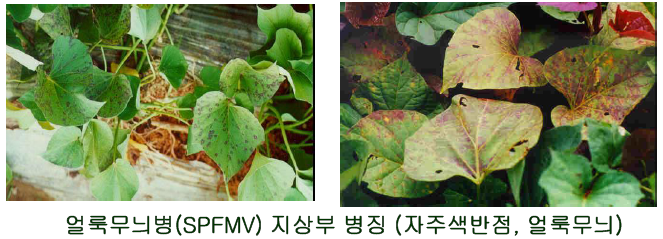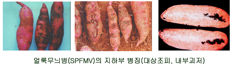 ◦ 고구마는 영양번식을 하므로 일단 감염된 고구마는 계속 바이러스를 보유하고 있어 지속적으로 피해를 입히므로 건전한 고구마를 종자로 사용