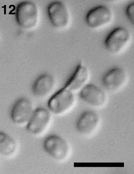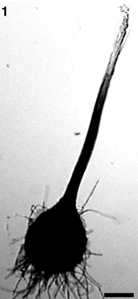 ◦ 자낭균에 속하며, 자낭각은 플라스크모양, 자낭은 타원형, 자낭포자는 타원형 내지 모자모양, 크기 5~8×3~6㎛, 분생포자는 원통형, 크기 11~25×4~5㎛, 후막포자는 난형 내지 도란형, 크기 9~18×6~13㎛임