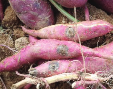 ◦ 생육 중에 발생했던 고구마를 저장하면 저장 중 균사 형태로 고구마 주변에 존재하다가 씨고구마를 파종하게 되면 토양에서 증식하여 고구마 내부에 침입하여 씨고구마를 썩게 함