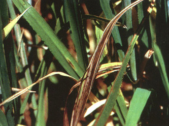 ◦ 주로 잎이나 잎집의 표면에 담황색 또는 황백색의 줄무늬가 생기고 진전되면 갈색으로 변하며, 간혹 이삭이나 줄기에도 발생함