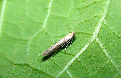 ◦ 날개편 길이 8~11mm의 소형나방으로 머리와 가슴 부분은 엷은 회황색이며, 더듬이는 회갈색으로 나타나고 앞날개의 바탕색은 엷은 황색이나 색체 변이가 있음