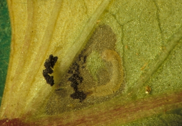 ◦ 유충은 부화하자마자 엽맥을 따라 선 모양의 굴을 만들고 잎 속으로 파고 들어가 갈색의 반투명한 텐트 모양의 굴속에서 가해함