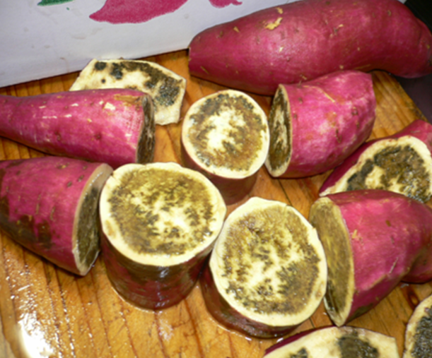 ◦ 고구마 겉 표면은 정상이나 내부(속살)에 흑갈색 반점 피해로 상품성 저하
