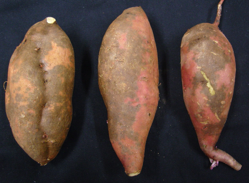 ◦ 고구마 표피가 검게 변하는 증상으로 품종에 따라 증상이 심하게 나타남