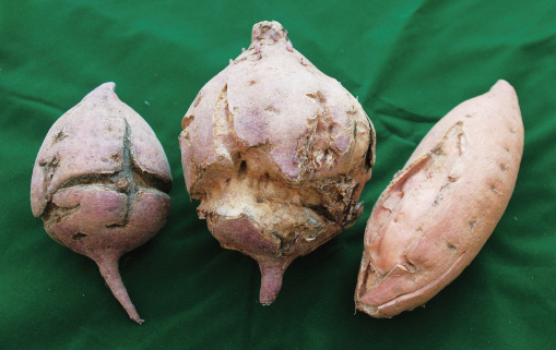◦ 고구마가 세로방향으로 쪼개지고 깊게 우묵하게 패이는 것이 특징
