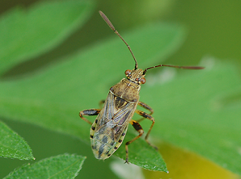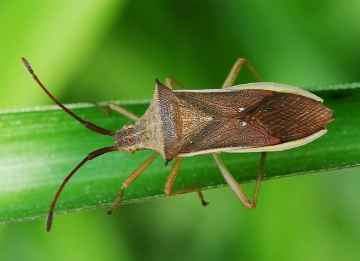 ◦ 흑다리잡초노린재는 몸 길이 6~8mm로 몸은 회갈색이고 날개맥은 적갈색이며, 여러 개의 흑갈색 반점이 있음