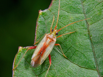 ◦ 홍색얼룩장님노린재는 몸길이 4~5mm로 매우 작고 몸은 연한 황록색이며, 붉은 줄무늬가 있음