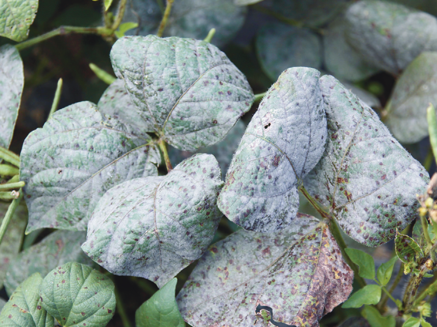 ◦ 주로 잎에 발생하지만 심한 경우 줄기와 꼬투리에도 생김
